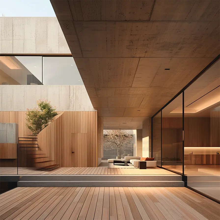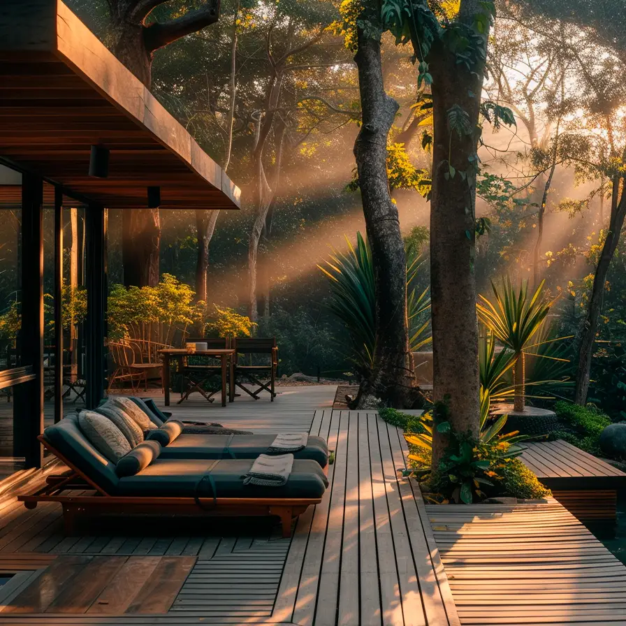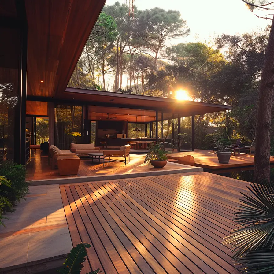 Garapa brings elegance and strength to modern architecture. Naturally resistant to mold and decay, this majestic wood thrives without the need for constant chemical treatments, offering a low-maintenance solution that stands the test of time.
